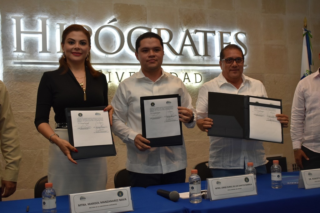 La Mtra. Marisol Manzanarez Nava, rectora de la Universidad Hipócrates, señaló que esta vinculación permitirá la profesionalización del personal que labora en las dependencias gubernamentales, agregó que también facilitará que los estudiantes puedan realizar servicio social y prácticas profesionales en las áreas relacionadas con su formación académica entre otros beneficios.