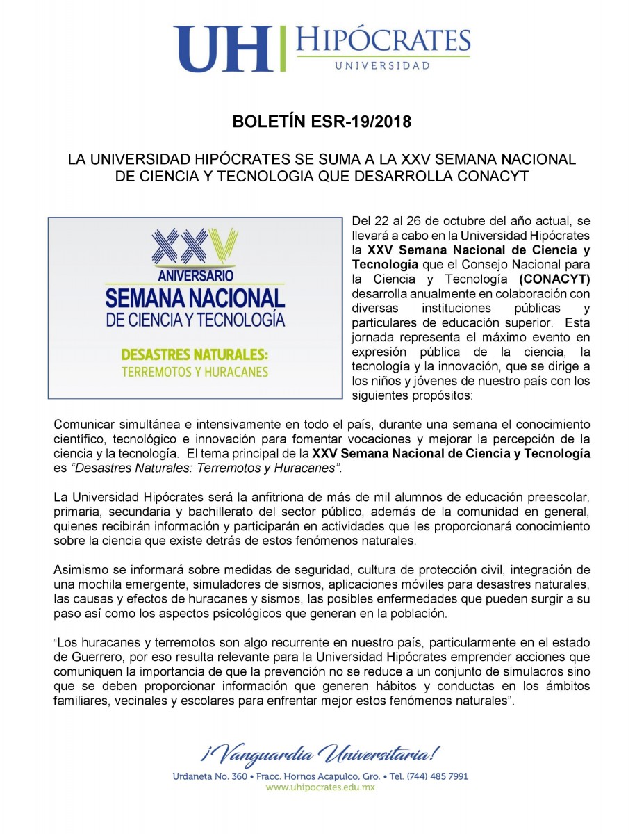 Empresa Socialmente Responsable N° 19Por UHipócrates / 22 octubre, 2018 XXV Semana Nacional de Ciencia y Tecnología