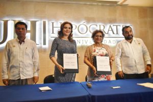 La rectora de la Universidad Hipócrates Manzanarez Nava en su intervención agradeció la presencia de la alcaldesa, Román Ocampo y mencionó, “su visita como universidad nos fortalece y al mismo tiempo nos compromete a seguir trabajando a favor de la educación, no solo del municipio sino del país, el convenio que vamos a firmar es el resultado de deseos en conjunto que hemos manifestado a favor de la capacitación y formación continua del personal que labora en el H. Ayuntamiento, pero no solo de ellos sino también para sus familiares familiares que a su vez tendrán la oportunidad de obtener becas para iniciar o continuar sus estudios”.