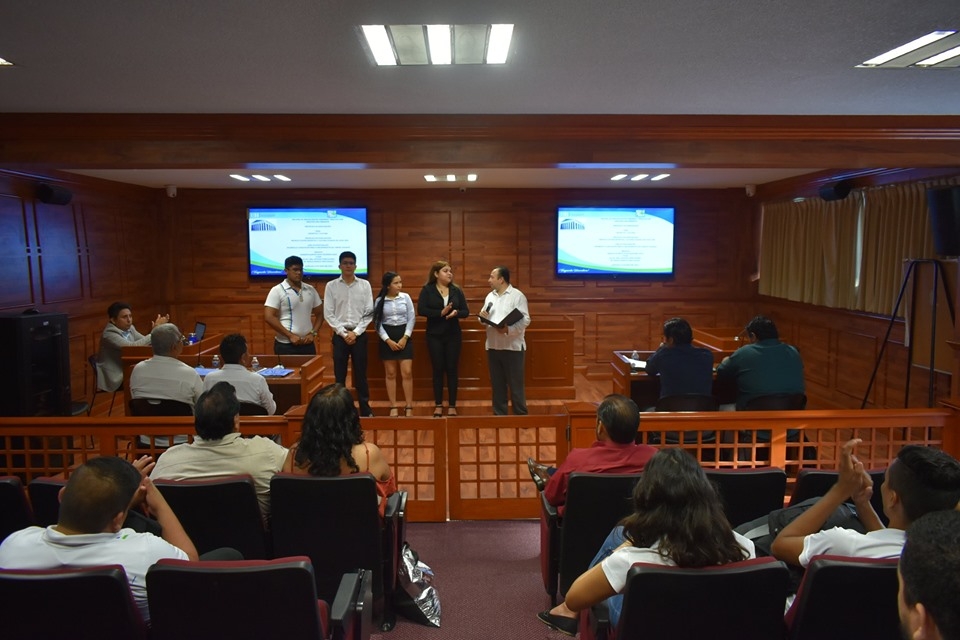 Los estudiantes defendieron sus protocolos ante el comité de investigación de la Facultad de Ciencias Exactas, Ingeniería y Tecnologías, conformado por el presidente el Dr. Franco Ernesto Tapia Guillén, el secretario el Arq. Juan Carlos Rodríguez Pascual y los vocales el Arq. Antonio Otero Muñoz, así como el Arq. Dimas Garcia Contreras. Además se contó con la presencia del Mtro. Juan Ramón Nieto Quezada, Vicerrector Académico y el Dr. Oliver Texta Mongoy, Director de Investigación.