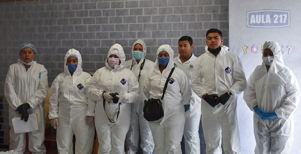 ALUMNOS DE LA LICENCIATURA EN CRIMINOLOGÍA, CRIMINALÍSTICA Y TÉCNICAS PERICIALES RECREAN ESCENAS DEL CRIMEN.