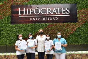 Las estudiantes del 6° semestre de licenciatura en Químico Biólogo Parasitólogo de la Universidad Hipócrates, Karla Montserrat Rosales Porcayo, Lizbeth Evelia Flores Manrique, Yatziri Asabay Ortíz, Darina Platero Santamaría, Flor Daniela García Rodríguez, Carolina Nava García y Sandra Vanessa Robles García; así como Brenda Ruíz Pineda, pasante de la licenciatura en Nutrición, resultaron ganadoras del evento ExpoCiencias Guerrero 2021 en las categorías de “Medio Ambiente” y “Agropecuarias y de Alimentos”.