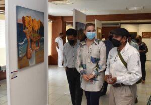 Del mismo modo, estudiantes, docentes, personal administrativo y autoridades escolares, apreciaron parte de las obras del pintor Daniel Orbe.