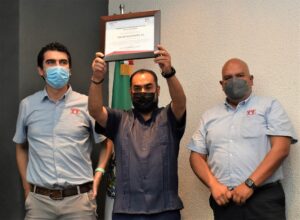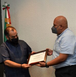 El reconocimiento fue entregado por parte del Mtro. Jair de Jesús Palafox Hernández, Gerente de Recaudación Fiscal del INFONAVIT, y fue recibido por el Mtro. Juan Ramón Nieto Quezada, Vicerrector Académico, en nombre de la Mtra. Marisol Manzanarez Nava, Rectora de esta casa de estudios.