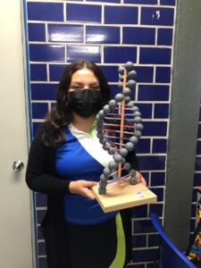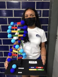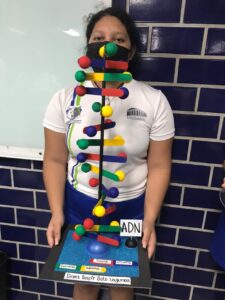 Alumnos del tercer semestre del bachillerato de la Universidad Hipócrates, presentaron maquetas de la representación del ADN, con la finalidad de identificar la estructura molecular compleja que modifica la información genética para la transmisión de rasgos heredados de los seres vivos.