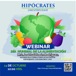 En el marco del Día Mundial de la Alimentación que se celebra anualmente el 16 de octubre, se realizó un webinar el cual fue impartido por el M.C José Isaid León del consultorio Equilibrato Consultorio de Nutrición.