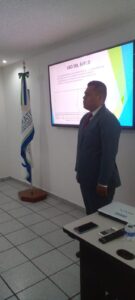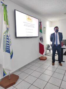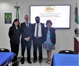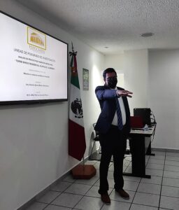 El postulante llevó a cabo su defensa ante el jurado académico de dicho posgrado, conformado por la presidenta Mtra. Patricia González Reyna; en calidad de secretario, el Mtro. Antonio Otero Muñoz; y como vocal, el Mtro. Juan Enrique Tejedo García de Alba.