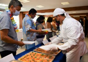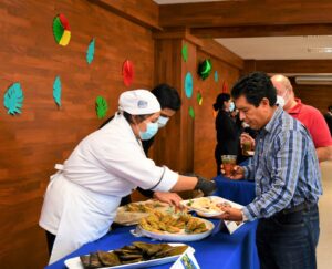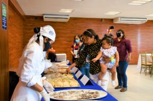 Durante la muestra gastronómica, los invitados pudieron degustar la gran variedad de sabores, texturas y combinaciones que ofrecen los platillos que conformaron el buffet: empanadas argentinas, arepas, nacatamales, pizza margarita y mediterránea, souvlaki, pan pita, sopa borracha, así como mojitos de fresa.