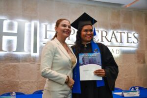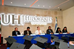 Al pronunciar su mensaje para despedir a estas generaciones, la rectora, Manzanarez Nava, mencionó: “No todos tienen el privilegio de terminar sus estudios después de una pandemia, ustedes son una generación de esperanza porque han elegido a la educación como una ventana de oportunidad para incorporarse al mundo laboral con otras perspectivas…Con gran orgullo puedo afirmar que el nivel alcanzado es el resultado de las acciones, el esfuerzo de tantos años, la búsqueda constante de la calidad y el trabajo colaborativo que cada día realiza la familia Hipócrates”.