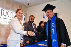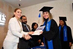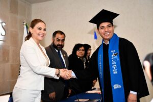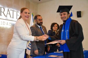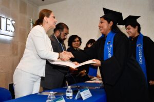 Asimismo, la Mtra. Manzanarez reiteró el apoyo de su Alma Máter y los exhortó a que sigan en la mejora continua de su persona, como profesionistas, pero sobre todo como seres humanos, deseándoles el mejor alcance de sus éxitos.