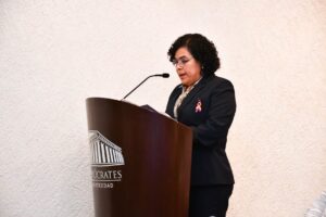 Para dar inicio, la Lic. Luz Verónica Radilla Tapia, Directora de Planeación, Articulación y Vinculación Institucional de esta casa de estudios, en nombre de la Mtra. Marisol Manzanarez Nava, Rectora de la Universidad Hipócrates, dio la bienvenida a las y los asistentes y mencionó: “…este foro reunió a diversas instituciones para intercambiar información y experiencias con el fin de obtener respuestas ante un tema tan importante como el de la justicia para las mujeres, para lograr lo anterior es necesario la construcción de sociedad pacífica e inclusiva en donde sus integrantes desde cada una de las posiciones que ocupen en la comunidad, tengan acceso a información para aprender y desaprender sobre los paradigmas de justicia para las mujeres”.