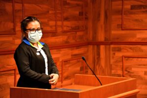 El primero de los exámenes correspondió a Sally Ethel Ayala Hernández, quien presentó la defensa del trabajo de investigación en modalidad de tesis, con el tema: “El derecho humano a la seguridad social en el siglo XXI”.