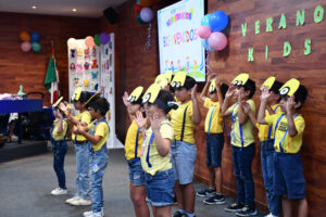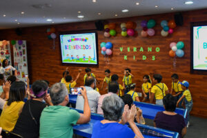 Con un derroche de energía y entusiasmo, los niños que formaron parte del Curso de Verano Kids 2023 protagonizaron un emotivo cierre de actividades en compañía de sus padres, familiares y autoridades escolares. El evento estuvo lleno de coloridos y divertidos números musicales que arrancaron sonrisas y aplausos de todos los presentes.