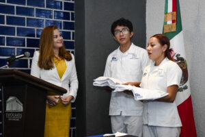 Del mismo modo, la Dra. Ma. del Rosario Cruz Cruz, Directora de la Facultad de Ciencias de la Salud, señaló que la ceremonia de colocación de batas blancas es un llamado desde el inicio de la formación de los estudiantes para cumplir con sus responsabilidades académicas, clínicas y éticas.