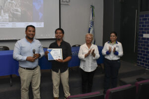 Al finalizar la charla, el Mtro. Irving Giovani Carbajal Suastegui, Responsable del Comité del Cuidado del Medio Ambiente de la Universidad Hipócrates, realizó la entrega de reconocimiento al Mtro. Saulen Jacinto, por su destacada participación.
