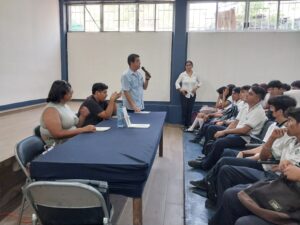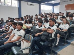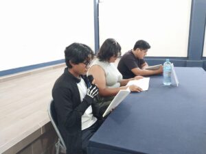 En la mesa de lectura de obra literaria en voz de sus autores de esta doble presentación, participaron: Jennifer López Gómez, estudiante de Literatura y Ciencias del Lenguaje; y Brandon Vicente Rosas Miranda, estudiante de Criminología, Criminalística y Técnicas Periciales; quienes compartieron con los adolescentes, una amena lectura de sus textos publicados en el libro.