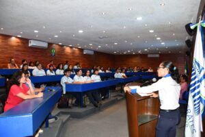 La jornada comenzó con las palabras de la Mtra. Tanya Trejo Muñuzuri, Coordinadora de la Licenciatura en Psicología, quien subrayó la relevancia del papel del psicólogo en la sociedad: “Los psicólogos desempeñan un rol crucial en el bienestar integral de las personas, ya que no solo brindan apoyo en situaciones de crisis, sino que también acompañan a los pacientes en su desarrollo personal y emocional, contribuyendo a una sociedad más equilibrada así como saludable”.