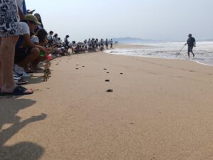 Los estudiantes tuvieron la oportunidad de observar y participar activamente en el proceso de liberación, comprendiendo así el ciclo de vida de las tortugas y los desafíos que enfrentan debido a la contaminación y la destrucción de su hábitat.