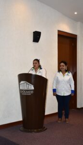 Durante su intervención, la Mtra. Manzanarez Nava recalcó el compromiso de los médicos en formación de poner en alto el nombre de su alma mater durante esta etapa. Enfatizó la importancia de mantener los estándares de excelencia y profesionalismo en las unidades médicas asignadas.