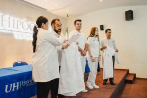 La bata blanca es un símbolo emblemático de la profesión médica, representando la dedicación, responsabilidad y compromiso con la salud. Por tal motivo, la Facultad de Ciencias de la Salud de la Universidad Hipócrates, llevó a cabo la ceremonia de colocación de batas para los estudiantes de nuevo ingreso de la Licenciatura en Médico Cirujano.