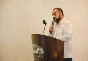 El Mtro. Juan Ramón Nieto Quezada, Vicerrector Académico, en representación de la Mtra. Marisol Manzanarez Nava, Rectora de la Universidad, subrayó la importancia de este acto en la vida de los futuros médicos. “La colocación de la bata blanca no es solo un acto simbólico, sino el inicio de un camino de responsabilidad, donde cada uno de ustedes asume el compromiso de velar por la salud y el bienestar de la sociedad… Este es el primer paso hacia una formación médica que exige ética, conocimiento y un profundo sentido de servicio”.