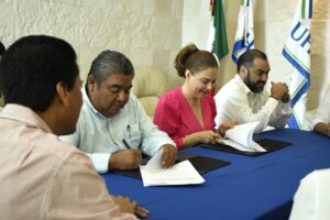 La Mtra. Marisol Manzanarez Nava, Rectora de esta casa de estudios, dio la bienvenida a los representantes de las instituciones participantes: el C.P. Fernando Román Torres, C. Daniel Núñez Castañeda, C.P. Ignacio Juan Diego Nava, Dr. Fidel Antonio Serrato Alemán, y el Lic. Fidel Serrato Valdez.