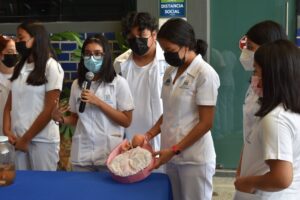 Estudiantes de primer semestre de la Licenciatura en Médico Cirujano del salón LM1A, presentaron maquetas de la asignatura de embriología, con diversos temas como: periodo embrionario, desarrollo embrionario, la placenta, métodos anticonceptivos, y ciclo menstrual.