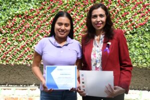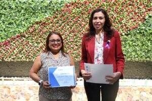En representación del Mtro. Juan Ramón Nieto Quezada, Vicerrector Académico, la Lic. Luz Verónica Radilla Tapia, Directora de Planeación y Vinculación Institucional, realizó la entrega de constancias a los egresados, a quienes dedicó un mensaje de felicitación y motivación.