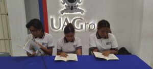La mesa de lectura fue moderada por el Mtro. Solón Vargas Barrera, gestor de proyectos culturales de la Universidad, y contó con la participación destacada de la Lic. Jennifer López Gómez, egresada de la licenciatura, así como de la Lic. Grecia López Betancourt, docente del Taller de Creación Literaria Prometeo Liberado. Ambas compartieron parte del trabajo realizado junto con las y los estudiantes, quienes fueron pieza clave en el desarrollo de esta publicación.