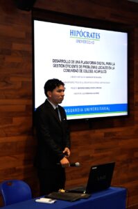 La Universidad Hipócrates reconoce el compromiso y la creatividad de los estudiantes del 8.º semestre de la Licenciatura en Ingeniería en Sistemas Computacionales, quienes, bajo las asesorías de la Mtra. Gladis Guzmán Guerrero, Mtro. Julio César Ávila Alcaraz, Mtro. Geiner Alfonso Niño Salgado, Mtro. Samuel Alvarado Agama, y el Mtro. Luis Alberto Castañeda Benítez, desarrollaron propuestas tecnológicas innovadoras como parte de su formación profesional.
