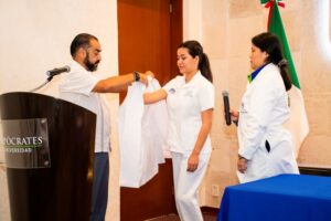 La Universidad Hipócrates vivió un momento de gran trascendencia académica, al llevar a cabo la Ceremonia de Colocación de Batas Blancas para las y los estudiantes de la Licenciatura en Médico Cirujano, Generación 2021–2025, quienes están por iniciar su formación clínica, con miras a su internado médico y servicio social.