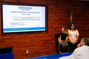 Por su parte, la Dra. Irma Baldovinos Leyva, Directora de Investigación y Emprendimiento, subrayó el papel de la Universidad Hipócrates como promotora de la ciencia y la innovación con responsabilidad social, además de reiterar el compromiso institucional con el impulso a la investigación desde el nivel licenciatura.