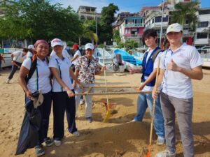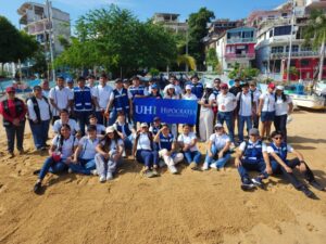 La Universidad Hipócrates participó en una jornada de limpieza en la franja de arena de la playa Tlacopanocha, resultado de la colaboración con el H. Ayuntamiento de Acapulco, a través de la Dirección General de Ecología y Protección al Medio Ambiente.