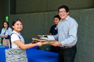 En la entrega del material también estuvieron presentes la Mtra. Mónica Rodríguez Liébanos, Directora de Servicios Estudiantiles de la Universidad Hipócrates; la Mtra. Diana Patricia Gutiérrez Martín del Campo, Coordinadora de Extensión y Difusión Cultural; y el Mtro. José Moreno Portillo, Director de la Oficina de Evaluación del Aprendizaje Estudiantil, quienes reafirmaron el compromiso institucional con la responsabilidad social universitaria y el fortalecimiento de una cultura ambiental solidaria y sostenible dentro de la comunidad universitaria.