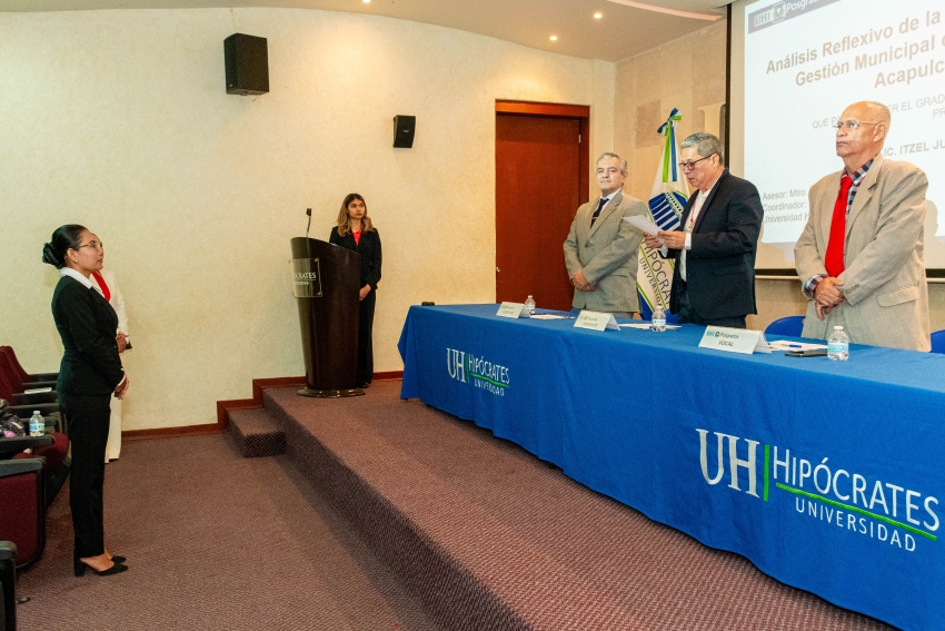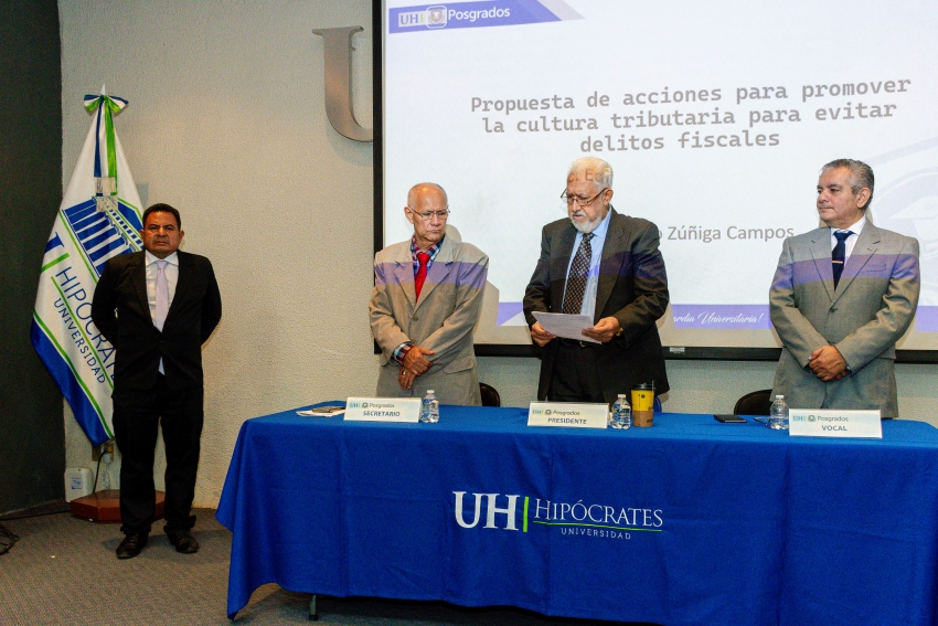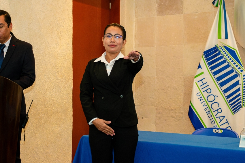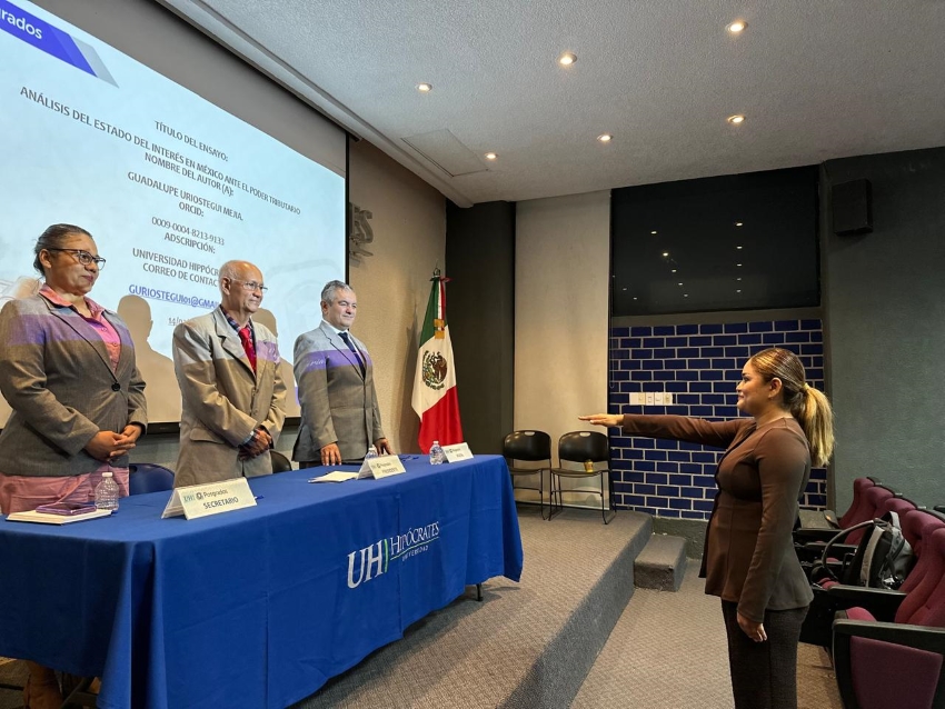 El área de Posgrados de la Universidad Hipócrates llevó a cabo la ceremonia de toma de protesta de estudiantes de la Maestría en Derecho Fiscal, quienes culminaron satisfactoriamente su proceso académico mediante la presentación y defensa de sus trabajos de investigación.