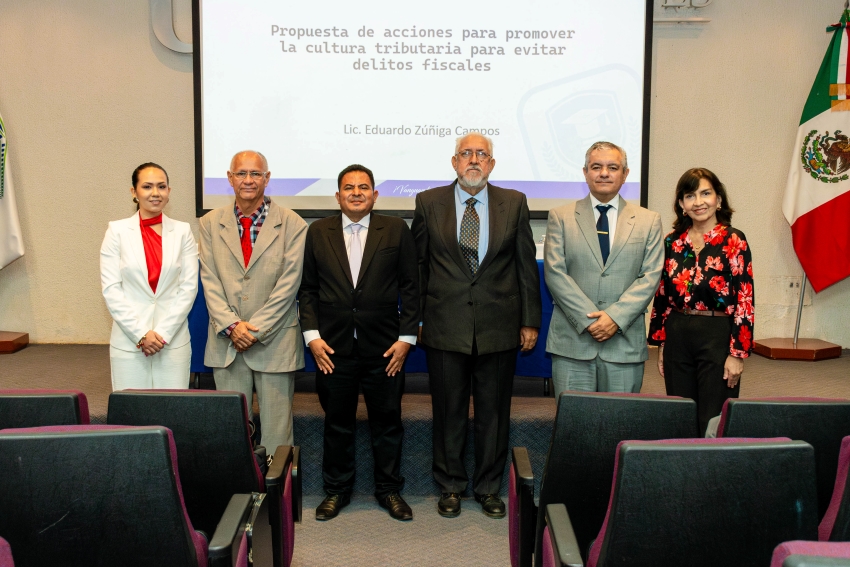 Por su parte, Eduardo Zúñiga Campos expuso la investigación “Propuesta de acciones para promover la cultura tributaria para evitar delitos fiscales”, trabajo enfocado en el fortalecimiento de la conciencia fiscal y la prevención de conductas ilícitas mediante estrategias de formación y orientación ciudadana.