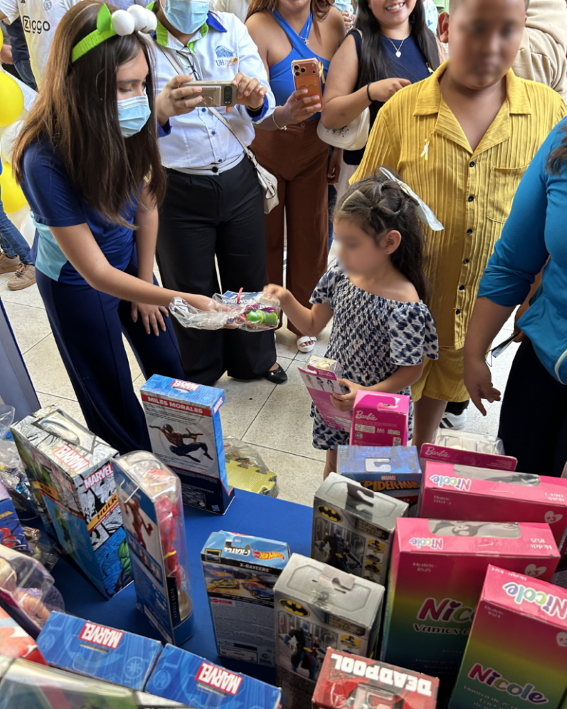 En un ambiente festivo y de sensibilización, se promovió la importancia de la prevención y la detección oportuna del cáncer infantil. Nuestros estudiantes llevaron sonrisas y alegría a niñas, niños y asistentes al convivir con ellos, bailar, tomarse fotografías y participar caracterizados con disfraces y botargas de personajes infantiles, generando un espacio de cercanía y solidaridad.