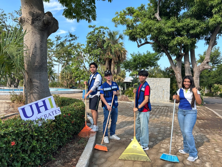 En la jornada también participaron la Directora de la Preparatoria, docentes y personal administrativo de la Universidad Hipócrates, quienes acompañaron y orientaron a los estudiantes durante el desarrollo de las actividades. De manera organizada, se conformaron equipos de trabajo que realizaron labores de limpieza utilizando herramientas como escobas, arañas, recogedores y bolsas para basura.
